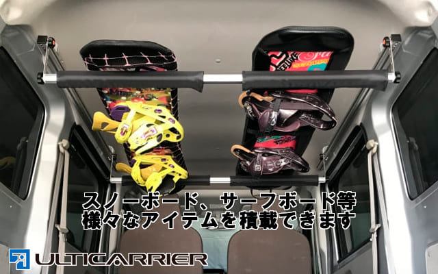 市場 ハイゼット 1cm 車中泊 サイドバー 室内キャリア アトレー スキー サーフボード スノーボード キャンプ 釣り 用 ボードキャリアセット